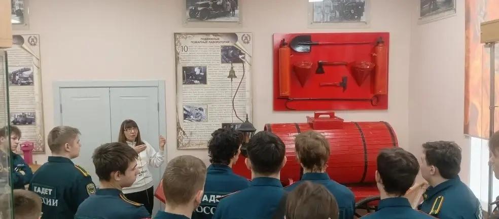 В музее кадеты ознакомились с историей создания первых пожарных команд в России и Калужской области, снаряжением и оборудованием огнеборцев того времени.